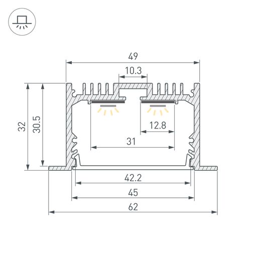 Встраиваемый алюминиевый профиль черного цвета с накладным фланцем для основной и контурной подсветки помещений. Габаритные размеры профиля составляют 2000 мм в длину, 62 мм в ширину и 32 мм в высоту, паз для установки 49 мм. Площадка для установки светодиодных лент позволяет использовать ленту шириной до 31мм и мощностью до 46,4 Вт/м. Это обеспечивает гибкость в выборе светодиодных лент и создает потрясающие световые решения. Экраны, заглушки и другие аксессуары не включены в комплект и приобретаются отдельно. Цена указана за 1 метр профиля. Отличное решение для создания современных световых проектов.