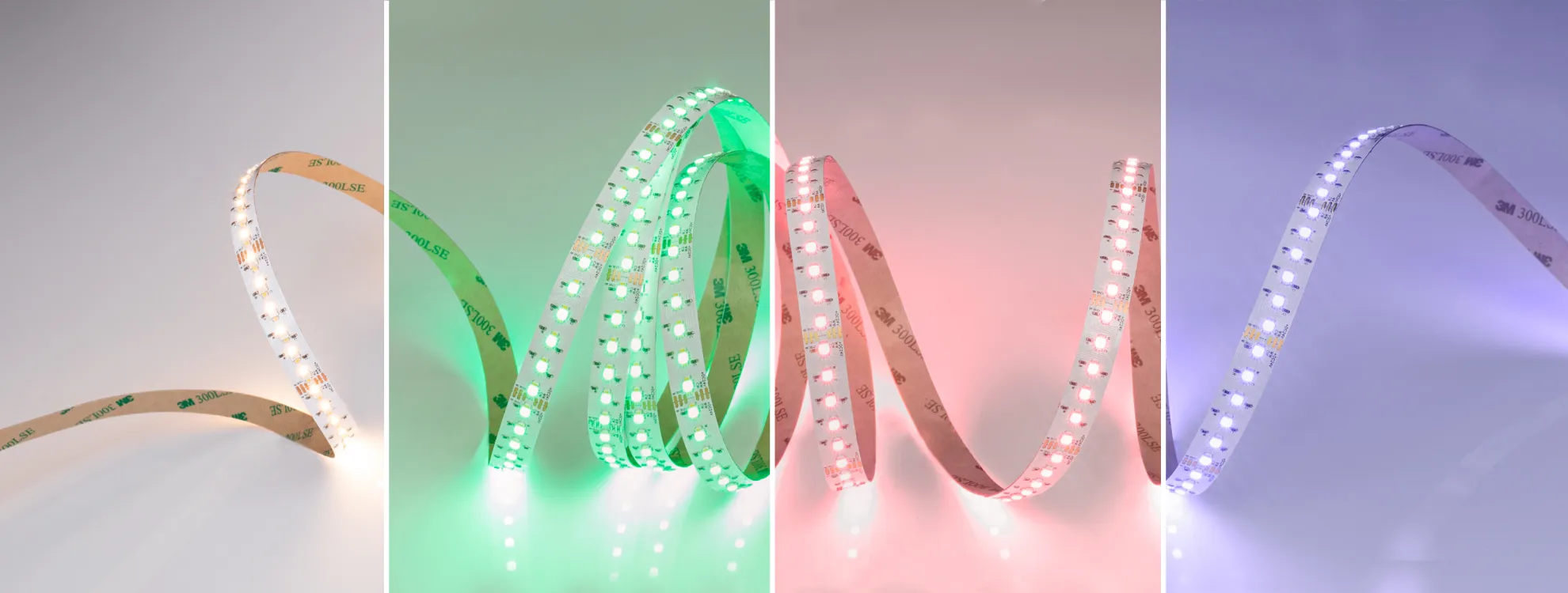 Свечение каналов белого цвета обладает высоким индексом цветопередачи (CRI>90), благодаря чему цвета окружающих предметов не искажаются, а ленту можно использовать для подсветки торговых витрин.