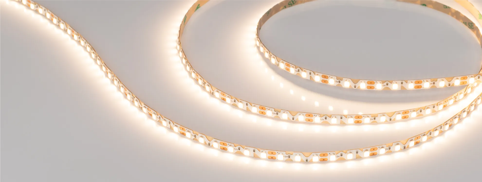 Гибкие ленты серии RZ A120 обладают фигурной платой в форме волны, благодаря чему их можно сгибать в горизонтальной плоскости. За счет этого ленты являются отличным решением для подсветки изогнутых поверхностей и букв, а также для создания светильников из фигурного профиля.