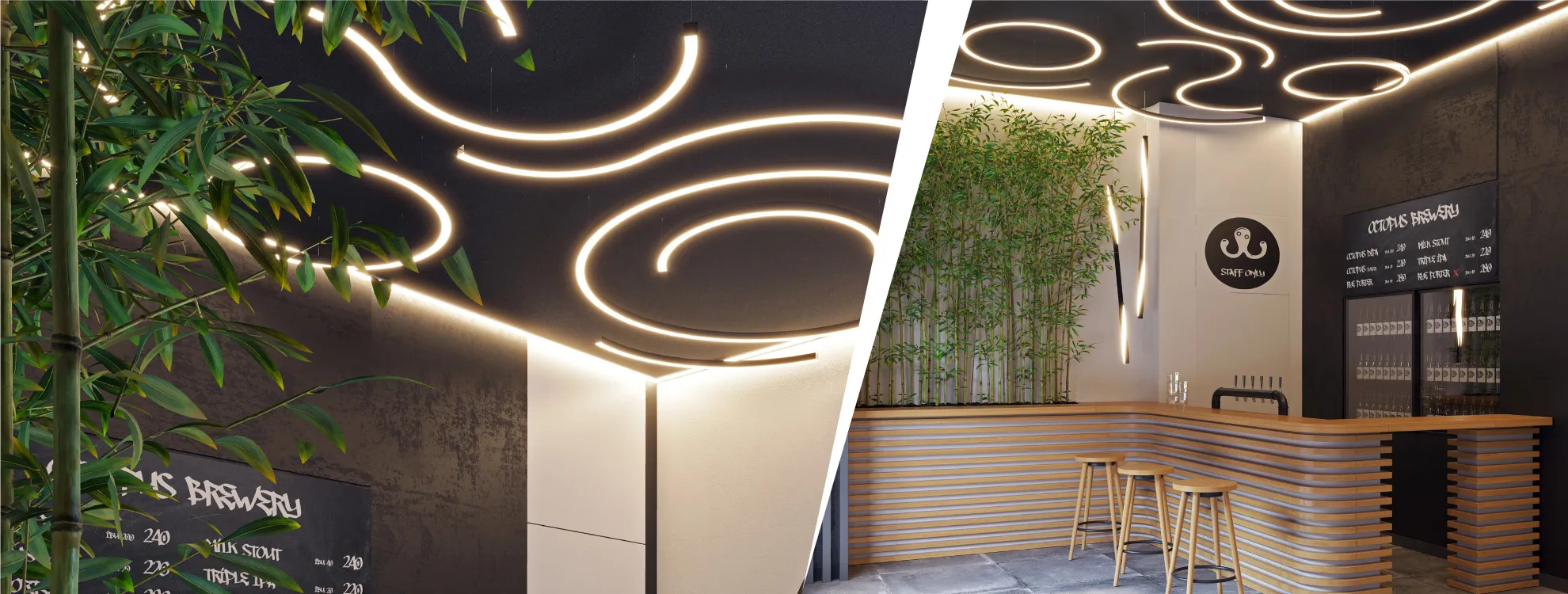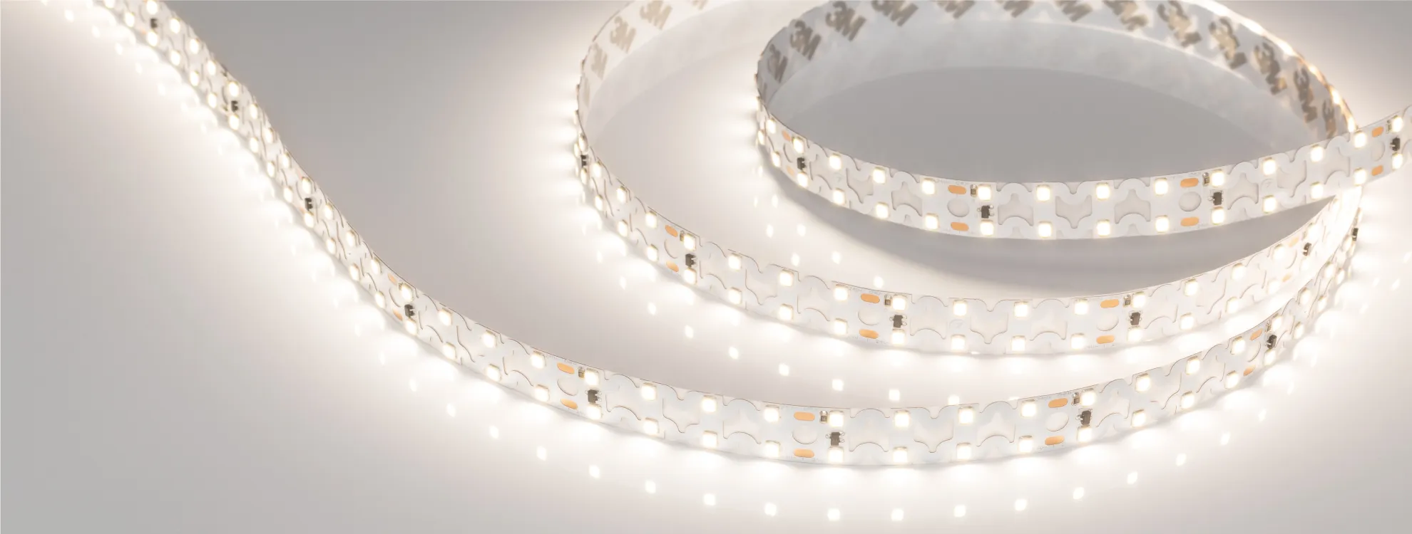 Ленты с изгибом на плоскости, серия A160. Тип светодиодов 2835/3528 (A), 160 светодиодов на 1 метр. Гибкая лента с фигурной платой в форме волны, легко изгибается на плоскости.