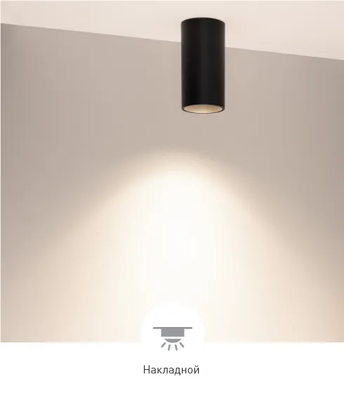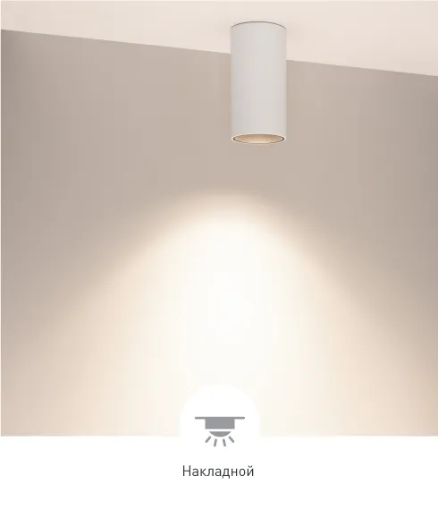 За счет узкого угла излучения (40°) и углубленного внутрь корпуса рассеивателя в пространстве создается акцентное освещение без слепящего эффекта.