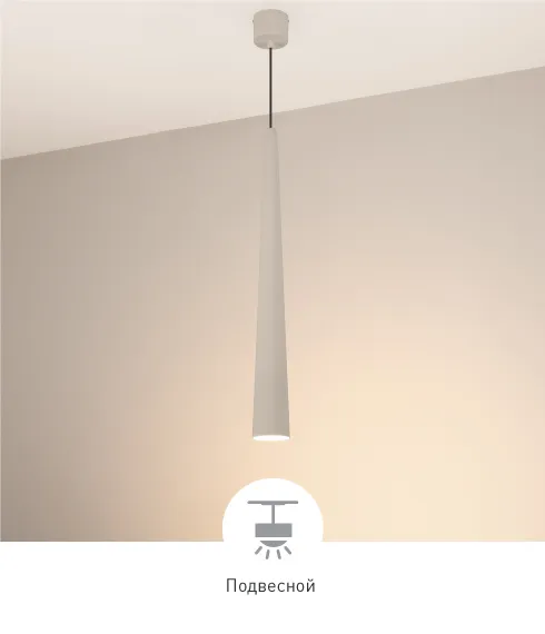 В ассортименте есть светильники двух размеров: высотой 400 и диаметром 57 мм, а также высотой 600 и диаметром 76 мм. Длина подвеса регулируется в пределах 2 м.
