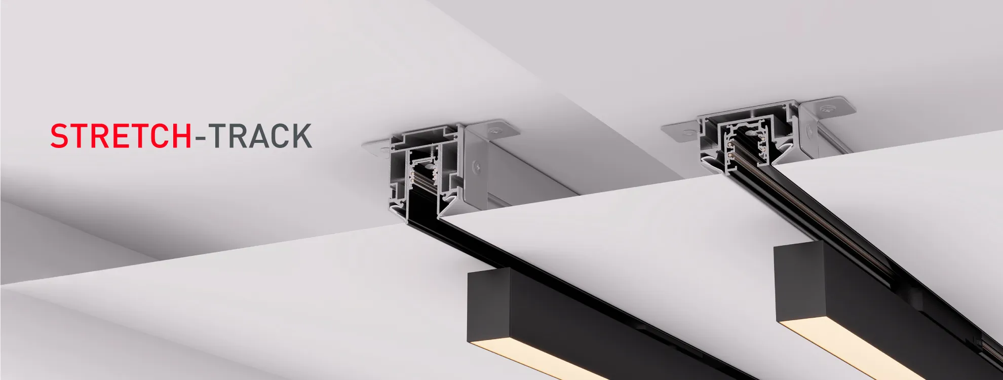 Профили-держатели STRETCH-TRACK предназначены для монтажа магнитных, а также одно- и трехфазных трековых систем в натяжной потолок.