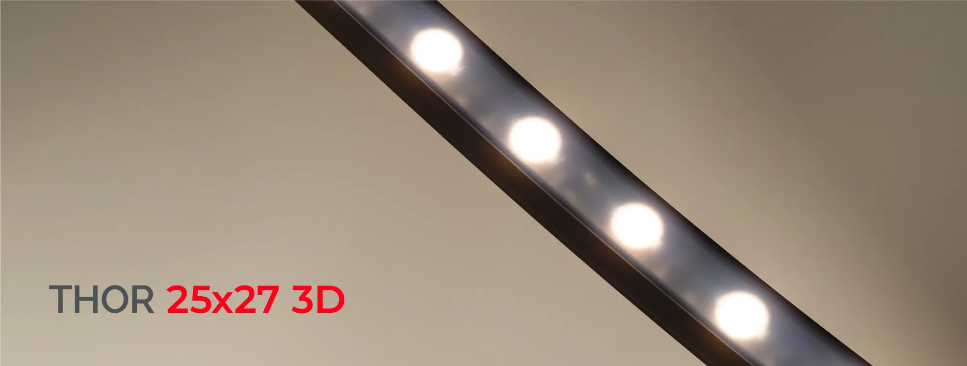 Грейзеры THOR — новая эра в фасадном освещении. Изделия представляют собой светодиоды в герметичной прозрачной оболочке из силикона. Благодаря узкому углу излучения (35°) и линзованной оптике грейзеры создают плотный направленный световой поток, который контрастно подсвечивает фасад здания.