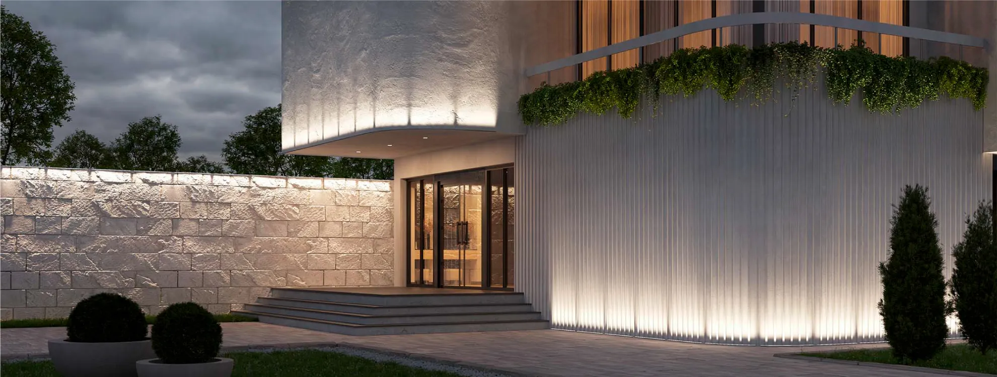 В отличие от волвошеров, которые равномерно подсвечивают фасад, грейзеры устанавливаются гораздо ближе к поверхности, что позволяет подчеркнуть ее рельеф и создать эффектные тени.