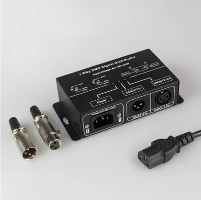Усилители DMX-сигнала предназначены для увеличения дальности передачи DMX-сигнала между различными устройствами или количества DMX-декодеров, подключаемых к одной шине.