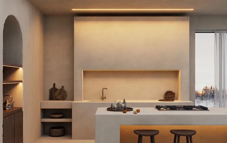 Миниатюрный накладной профиль LINE D предназначен для организации аккуратной и функциональной подсветки мебели, ниш и других элементов интерьера.