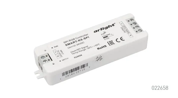 Контроллер SMART-K6-SPI для светодиодной ленты «Бегущий огонь» уже содержит 32 встроенных цветовых эффекта, выбор которых легко осуществляется с помощью пульта ДУ. Контроллер поддерживает регулировку яркости свечения и скорости выполнения программ.